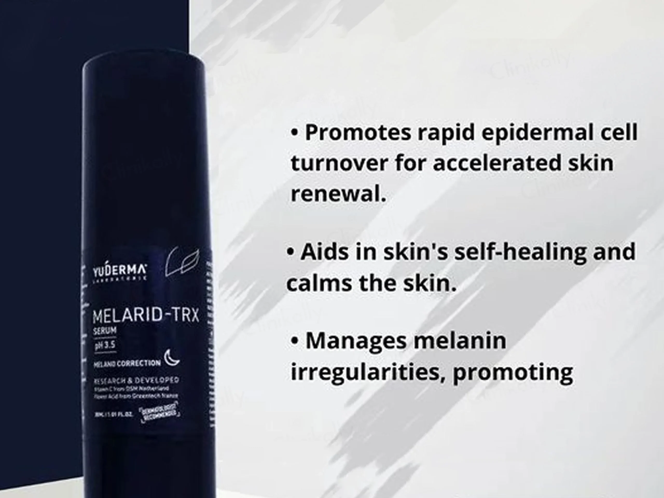 Yuderma Melarid-TRX Melano Correction Serum is a dermatologist-recommended night treatment for stubborn pigmentation, melasma, acne marks and uneven tone. Its pH 3.5 formula with depigmenting and exfoliating flower acids, tranexamic complex and healing actives promotes rapid epidermal cell turnover, speeds skin’s self-repair and helps regulate melanin production. Lightweight and fast-absorbing, it refines texture, smooths dull patches and reveals clearer, brighter, more even complexion. Use regularly with broad-spectrum sunscreen for visible, long-lasting glow, suitable for all skin types including oily, combination and pigmentation-prone skin.